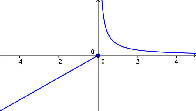 Functions defined on their vertical asymptotes are a bit more contrived, but they are completely legitimate and still pass the “vertical line test.” These functions must be defined piece-wise, like so: