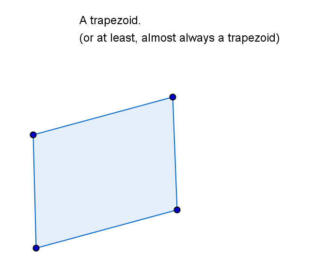 Yes it’s true. I’m writing about trapezoids again (having written passionately about them here and here previously). I’ve been taking a break from blogging, as I usually do in the summer. For us, school starts in just two weeks. So I thought I’d come out of my shell and post something…and of course I always have something to say about trapezoids :-).